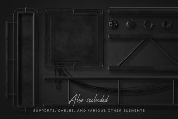 其他元素:电缆、网格、支架、... PSD 和 PNG 格式,300 dpi
