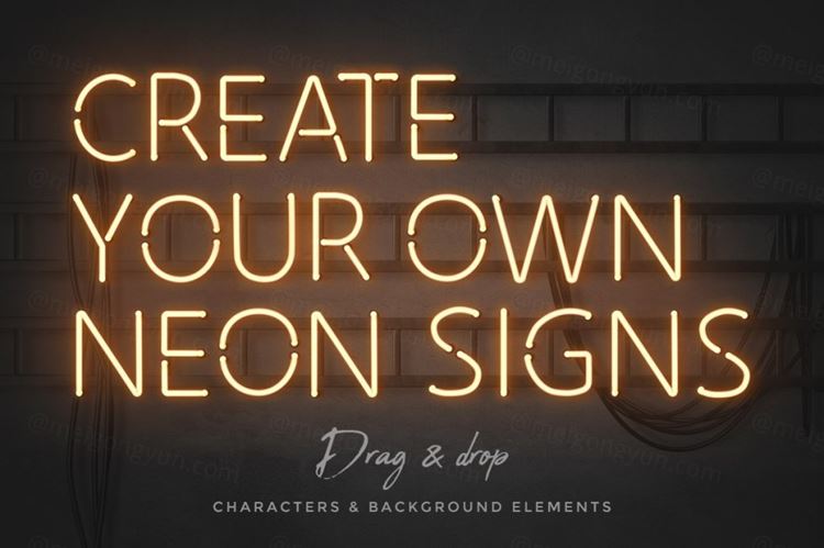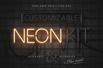 图穷联素材库 » 复古霓虹灯氙气灯灯管字母图层样式PSD模板素材 Neon a