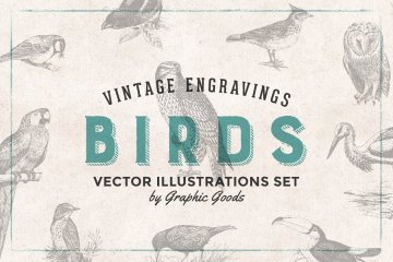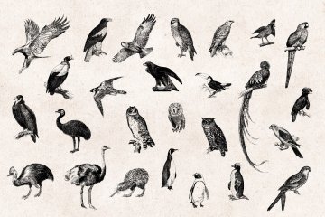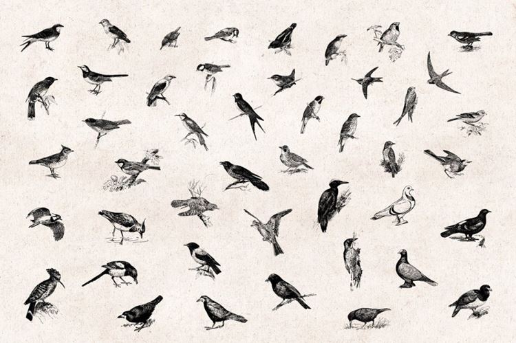 图穷联素材库 » 97张手绘复古鸟类雕刻剪贴画矢量插画素材 Birds Eng