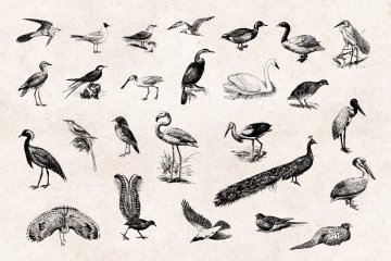 97张手绘复古鸟类雕刻剪贴画矢量插画素材 Birds Eng
