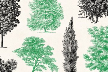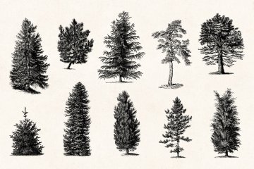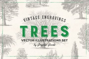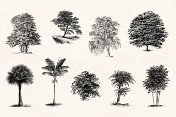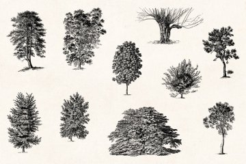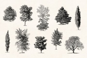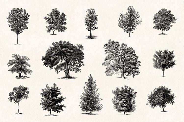 图穷联素材库 » 复古树木杨柏核桃橡木等森林树木雕刻插画素材 Trees -