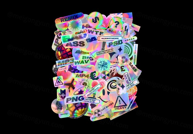 图穷联素材库 » 超高质量复古全息幻彩镭射渐变贴纸PNG免抠图 AAA - H
