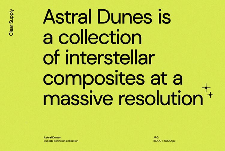 此产品下载包含10 个文件。 Astral Dunes 是大量分辨率的星际复合材料。在 18000 × 6000 像素下,所有图像都可以全比例使用或裁剪以创建无数独特的场景和背景。该系列共有 10 个复合材料。