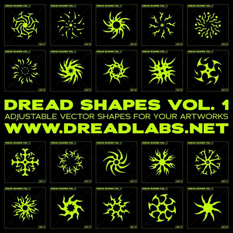 图穷联素材库 » 20种酸性艺术风格部落标志纹身图案抽象形状素材 DREADL