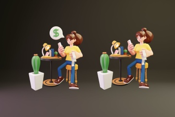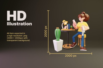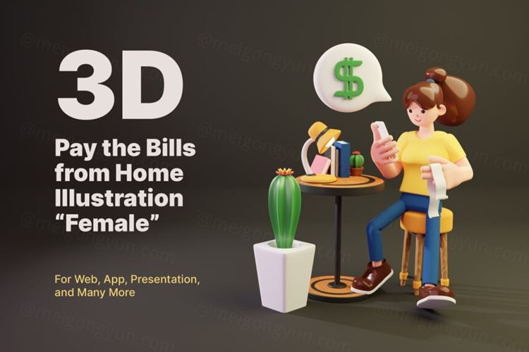 获取您在家中支付账单的女孩的高级 3D 插图以升级您的项目。可用于任何登陆、应用程序、游戏、演示和任何其他项目。