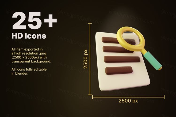让您的项目与众不同。您将获得 24 个 .png 和 .blend 文件格式的图标。