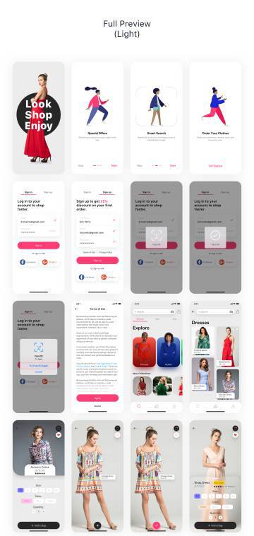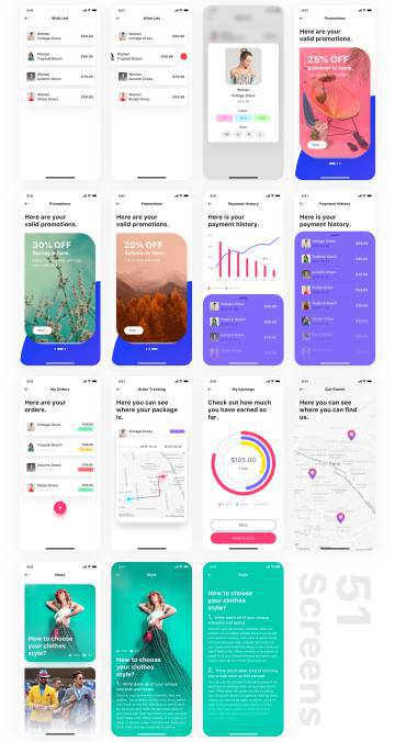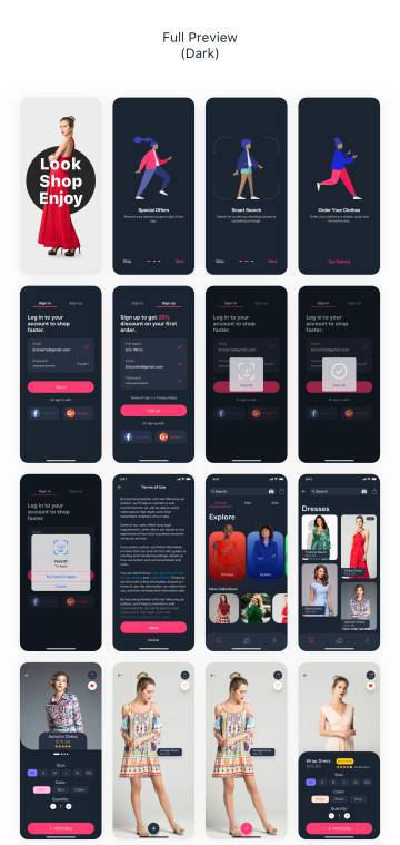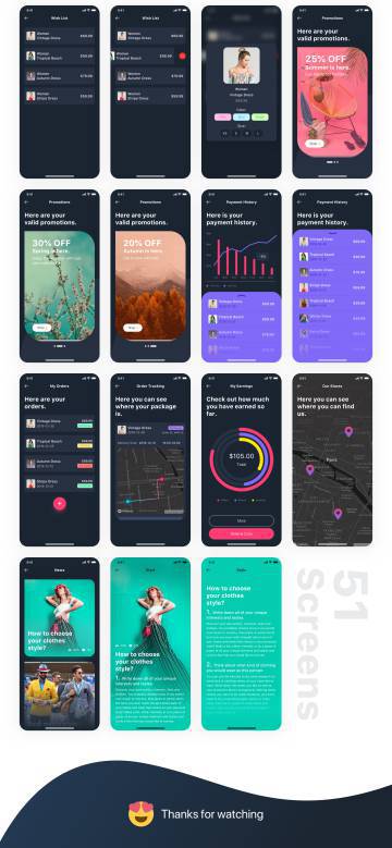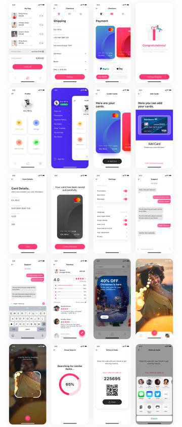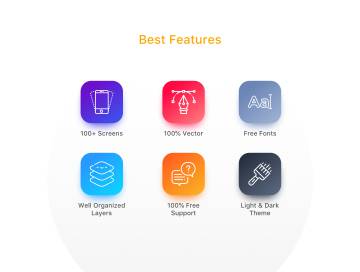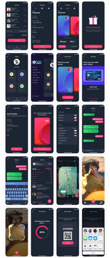 我们拥有您需要的所有屏幕,包括入职,登录,注册,付款历史,支持,推荐,订单跟踪,结账,促销,信用卡,个人资料,设置等等。所有的屏幕都在这两个可用的光与暗的主题。