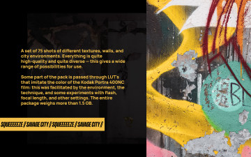 一组 75 个不同纹理、墙壁和城市环境的镜头。一切都非常高质量且非常多样化——这提供了广泛的使用可能性。