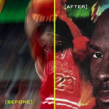 只需将您的图像复制并粘贴到智能 PSD 模板中,即可轻松实现具有 内置效果的 真实风格 。然后使用 全自动操作 在几秒钟内应用真正的半色调处理和导出。