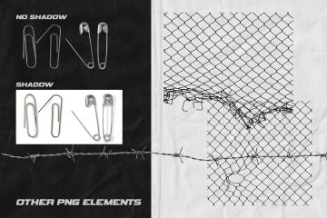 图穷联素材库 » 撕破纸片链条铁丝网别针电线条形码等装饰元素 Grunge A