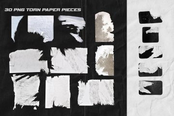 30 张独立的 PNG 撕裂纸片 + 7 个 PSD 模型(您可以在其中更改颜色)
