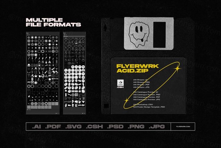 图穷联素材库 » 高皮质新潮流欧普酸性艺术抽象徽标图形装饰AI矢量元素 FLY