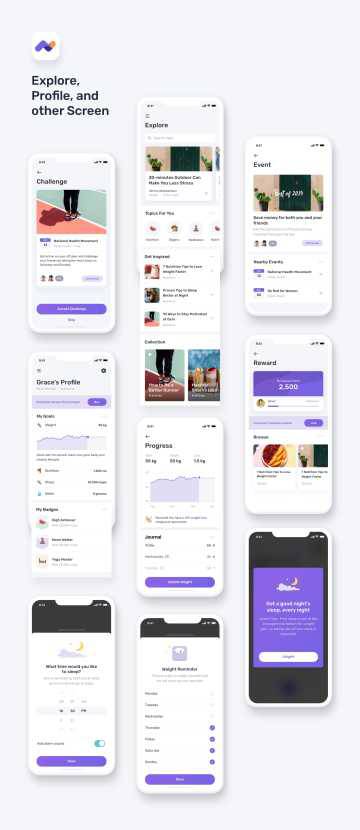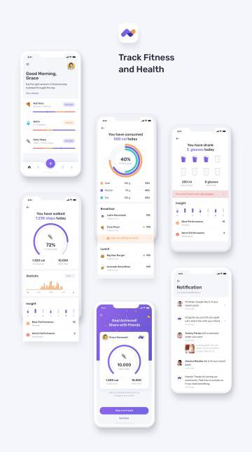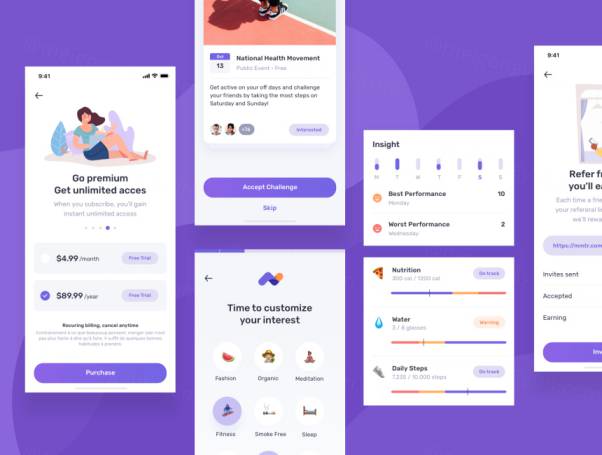 图穷联素材库 » 高品质健康健身移动APP应用程序UI界面设计工具包 Momotaro UI Ki