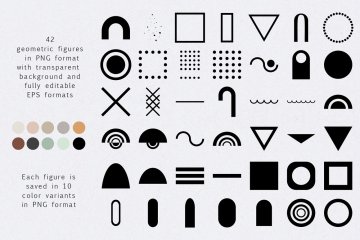 透明背景的 PNG 格式的 10 种颜色组合中的 42 种几何形状;