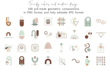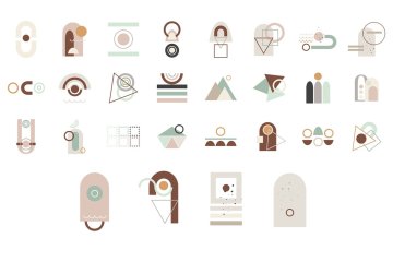 图穷联素材库 » 波西米亚风抽象主义几何构图矢量图形图案素材 100 shap