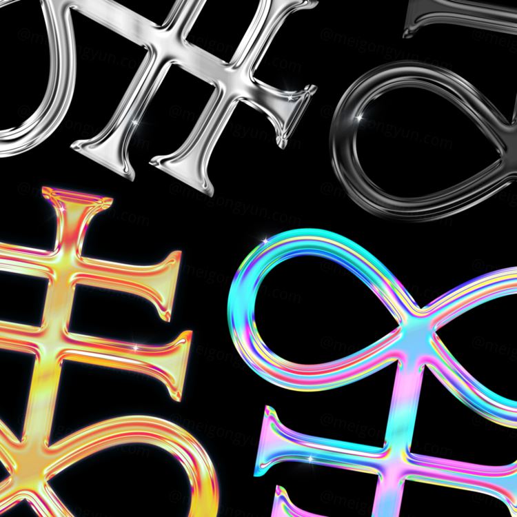 图穷联素材库 » 潮流超级闪亮全息镀铬金属镭射渐变文本特效PSD模板 Mode