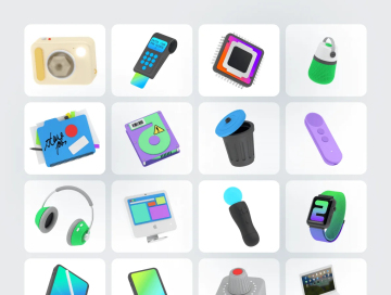 图穷联素材库 » C4D三维渲染电脑POS机耳机手表等虚拟现实数码工具3D插画