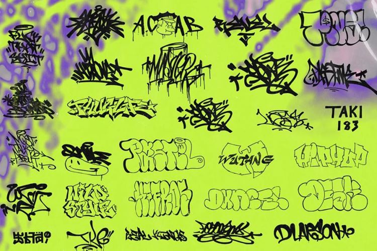 图穷联素材库 » 50个潮流手绘涂鸦标签轰炸符号素材合辑 50 Graffit