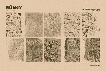 Runny Texture 是一组透明的 PNG 30 抽象纹理,具有使用实验方法在纸张中使用墨水、油、水彩和其他混合介质创建的重质新鲜手工纹理。提供多种重纹理供选择,每种纹理都有高质量的细节。纹理内部具有独特的特征,它们将在印刷或网络图形中发挥出色。