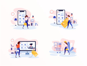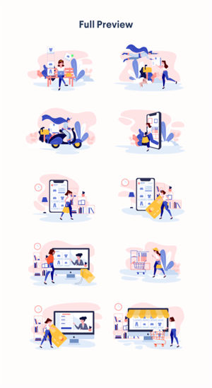 摆脱电子商务插图包,其中包含满足您电子商务需求的场景。从选择产品,订购产品到发送订单的过程中,每个场景都有自己的故事。非常完整和灵活,以满足您的需求。