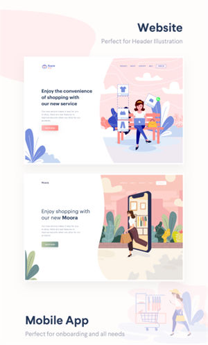 您可以在主对象插图和背景之间分开。因此,您可以根据自己的网站需求自由设计,或者增强移动应用程序的外观。