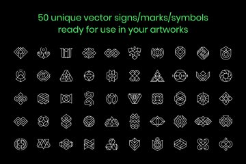 50 个高质量独特的抽象符号/标记/符号。使用它们来创建身份、品牌、海报、印刷品、艺术、图案等。