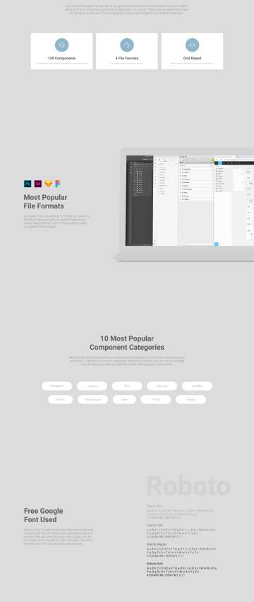 只需拖放元素并根据自己的喜好进行排列,即可轻松创建高转换目标网页。更改文本,颜色,图标,添加图像等等。所有元素都是基于矢量的,完全可编辑的并使用引导网格创建,它们有4种文件格式,Photoshop Xd,Sketch和Figma。