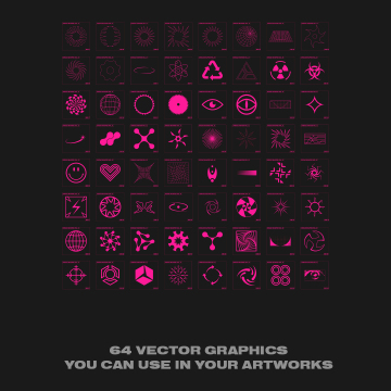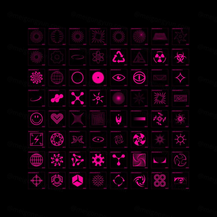 图穷联素材库 » 64个酸性艺术赛博朋克抽象HUD图形形状素材合辑 DREAD