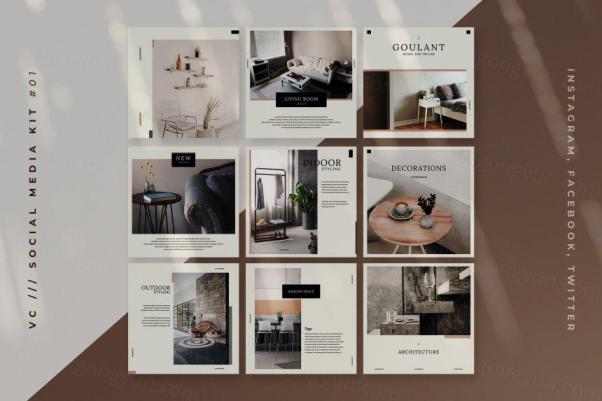 图穷联素材库 » 9个酷炫典雅专为Instagram设计的高分辨率PSD模板 Interior S