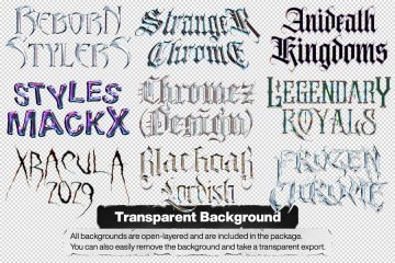 该系列由受 chrome 设计风格启发的样式组成,只需单击一下,即可帮助您将纯文本、徽标或形状变成杰作。这些样式将帮助您节省数小时的工作和精力。只需在工作表上输入您的徽标并保存文件。您还可以自定义设计,因为所有图层都已打开。然后您可以使用背景或透明样式导出。