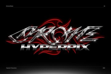 图穷联素材库 » 未来派酸性艺术科技铬合金镭射金属文字特效模板 Hyperpi