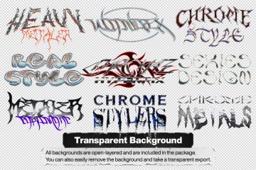 该系列由受 chrome 设计风格启发的样式组成,只需单击一下,即可帮助您将纯文本、徽标或形状变成杰作。这些样式将帮助您节省数小时的工作和精力。只需在工作表上输入您的徽标并保存文件。您还可以自定义设计,因为所有图层都已打开。然后您可以使用背景或透明样式导出。