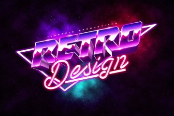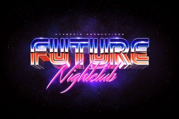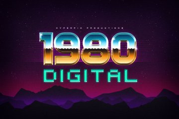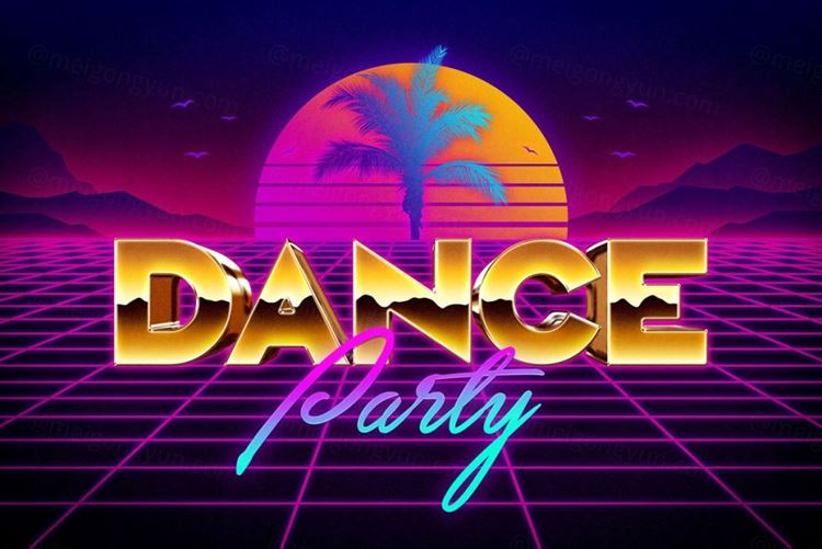 图穷联素材库 » 新复古风潮蒸汽波铬合金迷幻金属立体字特效PS模板 80s T