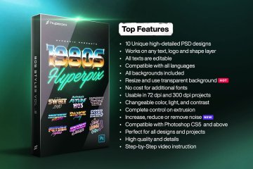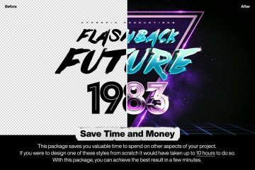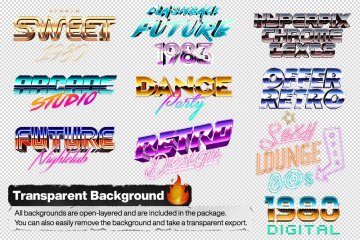 该系列由受 80 年代设计风格启发的风格组成,只需单击一下,即可帮助您将纯文本、徽标或形状变成杰作。这些样式将帮助您节省数小时的工作和精力。只需在工作表上输入您的徽标并保存文件。您还可以自定义设计,因为所有图层都已打开。然后您可以使用背景或透明样式导出。