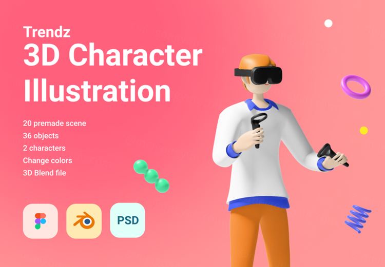 图穷联素材库 » 高品质三维渲染人物生活场景3D插画素材 Trendz 3D