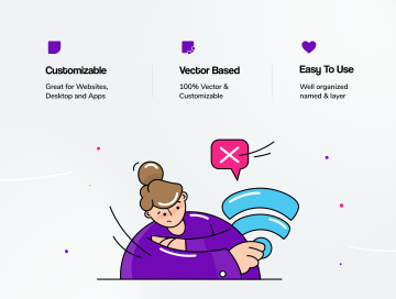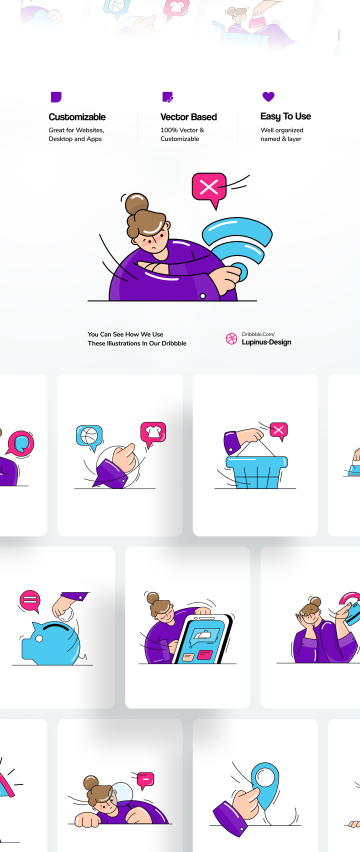 所有插图都是 100% 可定制的,并使用矢量形状创建。您可以更改颜色和尺寸以满足您的要求。