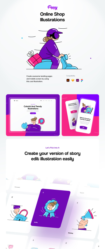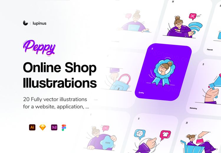 图穷联素材库 » 在线商店网店个性插画合集包 Peppy Illustrati