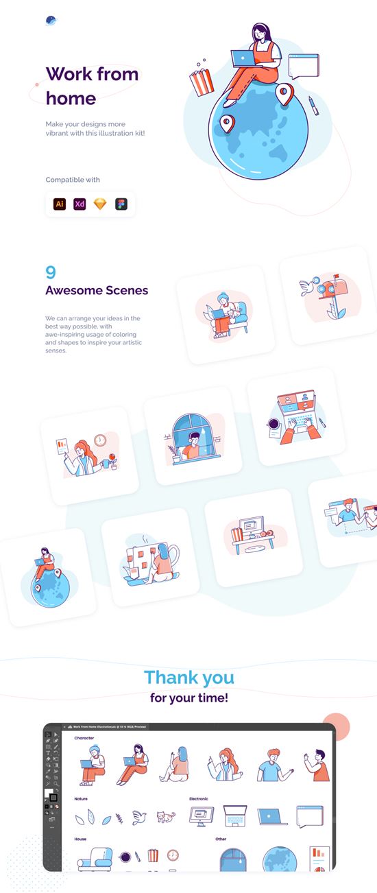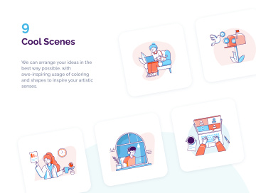 使用此插图套件让您的设计更加生动!我们可以以最好的方式安排您的想法,以令人惊叹的色彩和形状来激发您的艺术感。