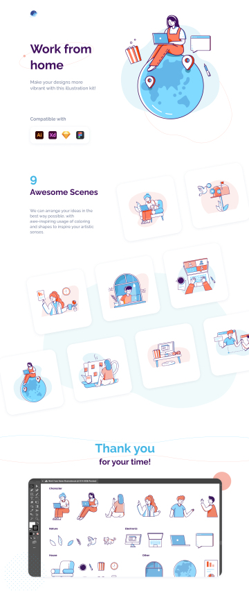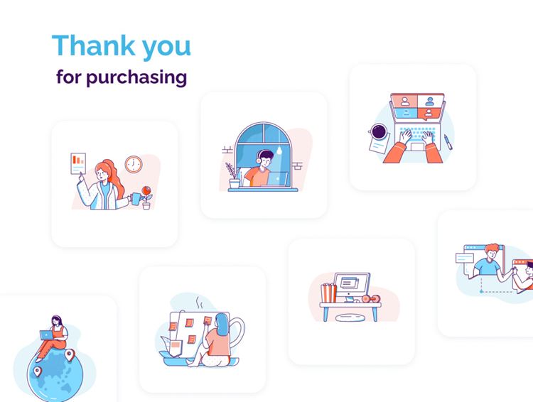 隔离在家自由工作者工作场景Web插图插画素材合辑 Work