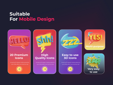 商业上是一组适用于任何产品的自定义 3D 图标。此包将完美补充您的应用程序、演示文稿、网站等的设计。该套件包括贴纸,例如:BANG、BOOM、COOL、CRASH、HELLO、OMG、OUCH、shh、YEAH、YES 等。创造令人惊叹的、独特的带有这些手工制作图标的项目,可在 Figma 中轻松编辑,并在 Blender 中完全可定制。