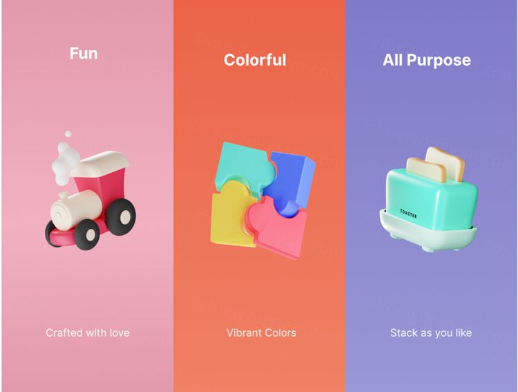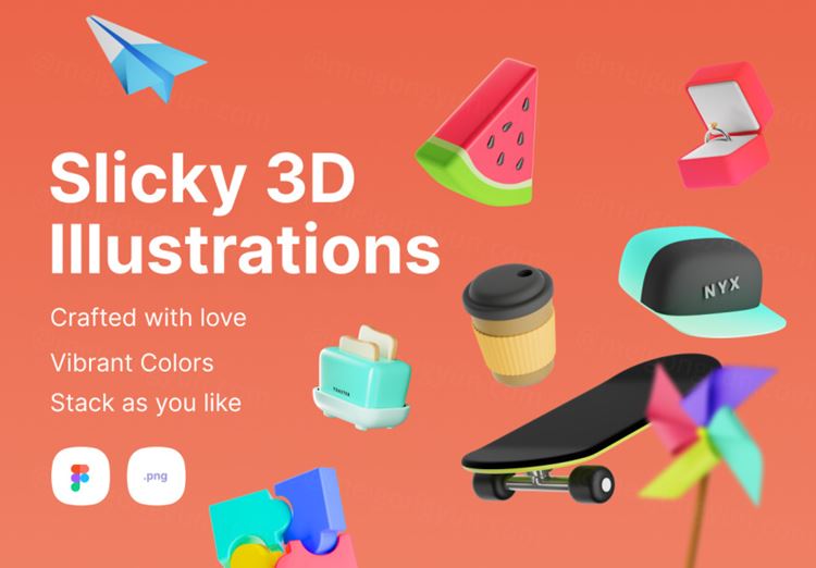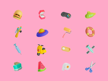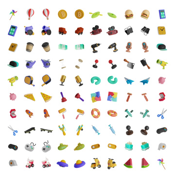 图穷联素材库 » 高品质三维渲染彩色卡通图标插画合集包 Slicky 3D I