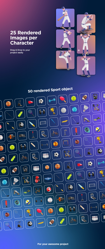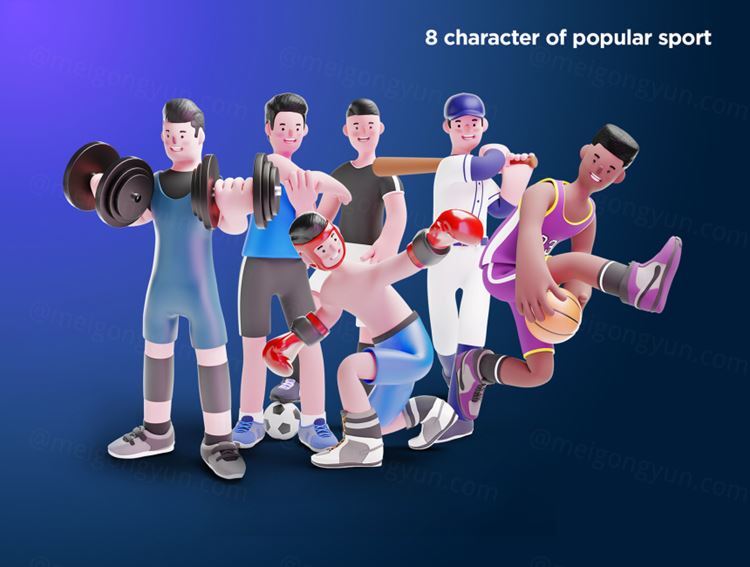 图穷联素材库 » 三维渲染卡通体育运动人物形象插图插画素材 3D Charac