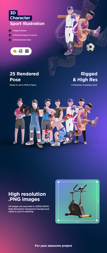 三维渲染卡通体育运动人物形象插图插画素材 3D Charac