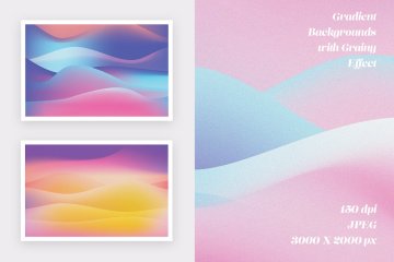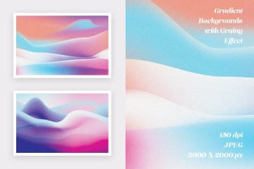 Grainy Gradient Landscape 包的灵感来自海浪、山脉和丘陵的自然弯曲形状。这些背景和圆形以充满活力的渐变色调着色,将成为您设计工具箱的重要资产。将它们用于您的数字项目或包装和品牌推广。粒状渐变可以随时使用最适合社交媒体和网络用途的光栅图像 (150 dpi)。抽象背景和柔和模糊形状的干净清晰版本也可用于打印 (300 dpi)。
