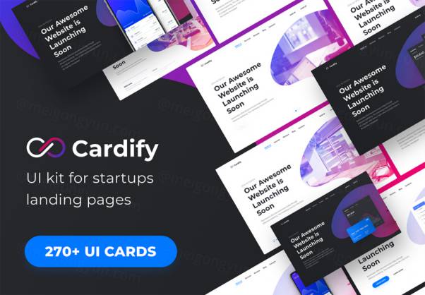 272个页面现代简洁的Web UI工具包 Cardify Startup UI