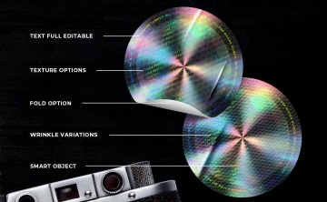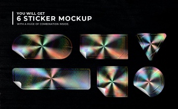 使用此包,您可以在贴纸中获得全息效果,在 Photoshop 中使用智能对象编辑工作非常容易,您只需插入设计并保存文件即可查看即时结果。