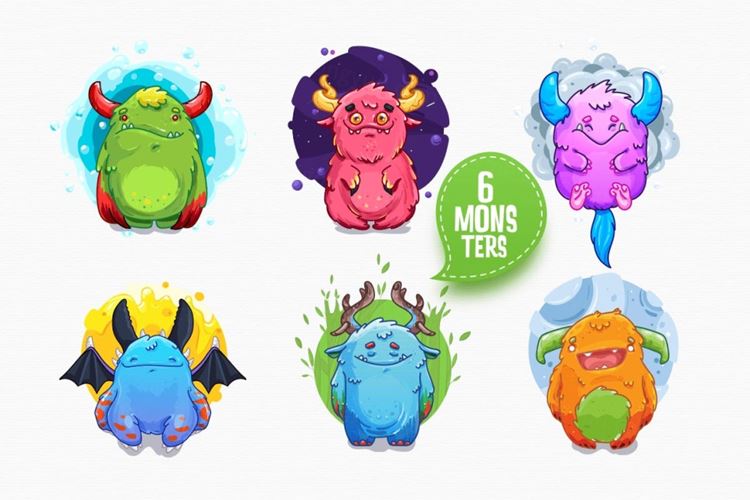图穷联素材库 » 可爱有趣的小怪兽贴纸剪贴画素材 Cute Monsters