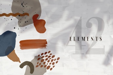 42 个现代色彩元素,PSD 和 PNG 格式(300 dpi),带有透明背景,RGB。