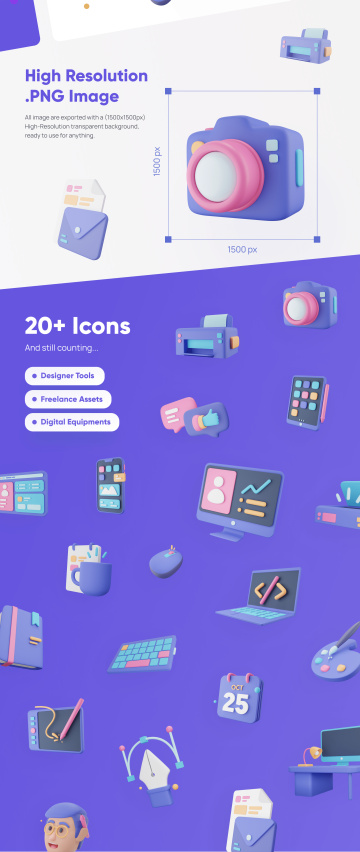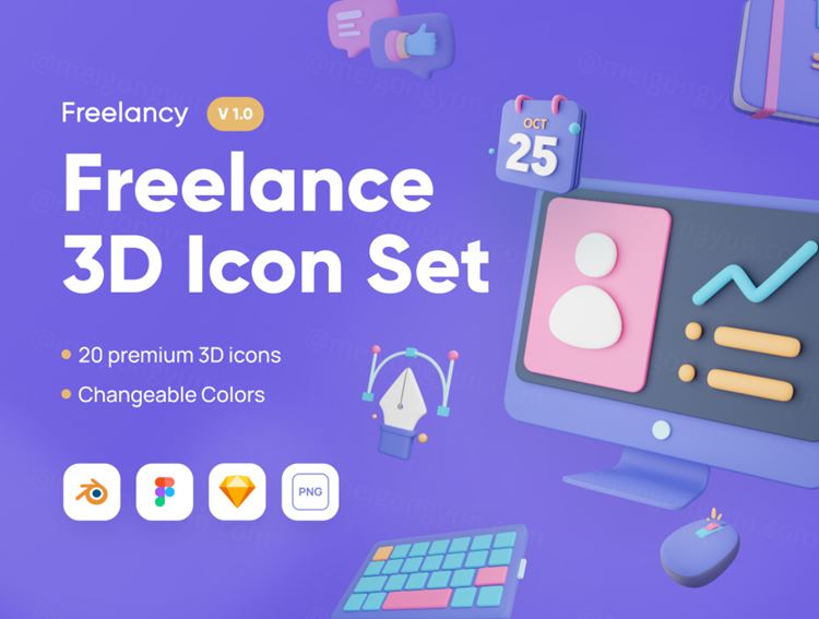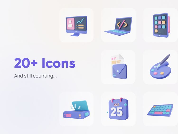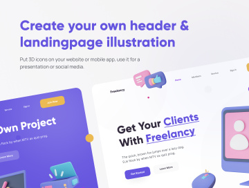 Freelancy 是一组适用于任何创意产品的自定义 3D 图标。使用 3D 图标让您的下一个产品和项目更加精彩。