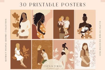 温馨准妈妈婴儿孩子父母场景插画合集包 Abstract Fa